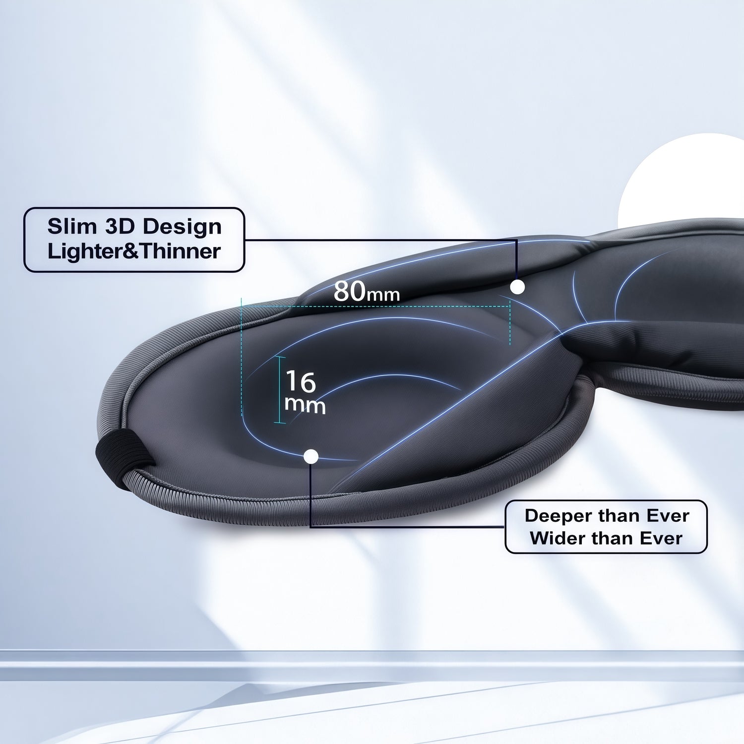 - Experience the ultimate comfort with the Slim 3D Sleep Mask, designed to provide total blackout and relieve pressure on your eyes, helping you enjoy deep, rejuvenating sleep.